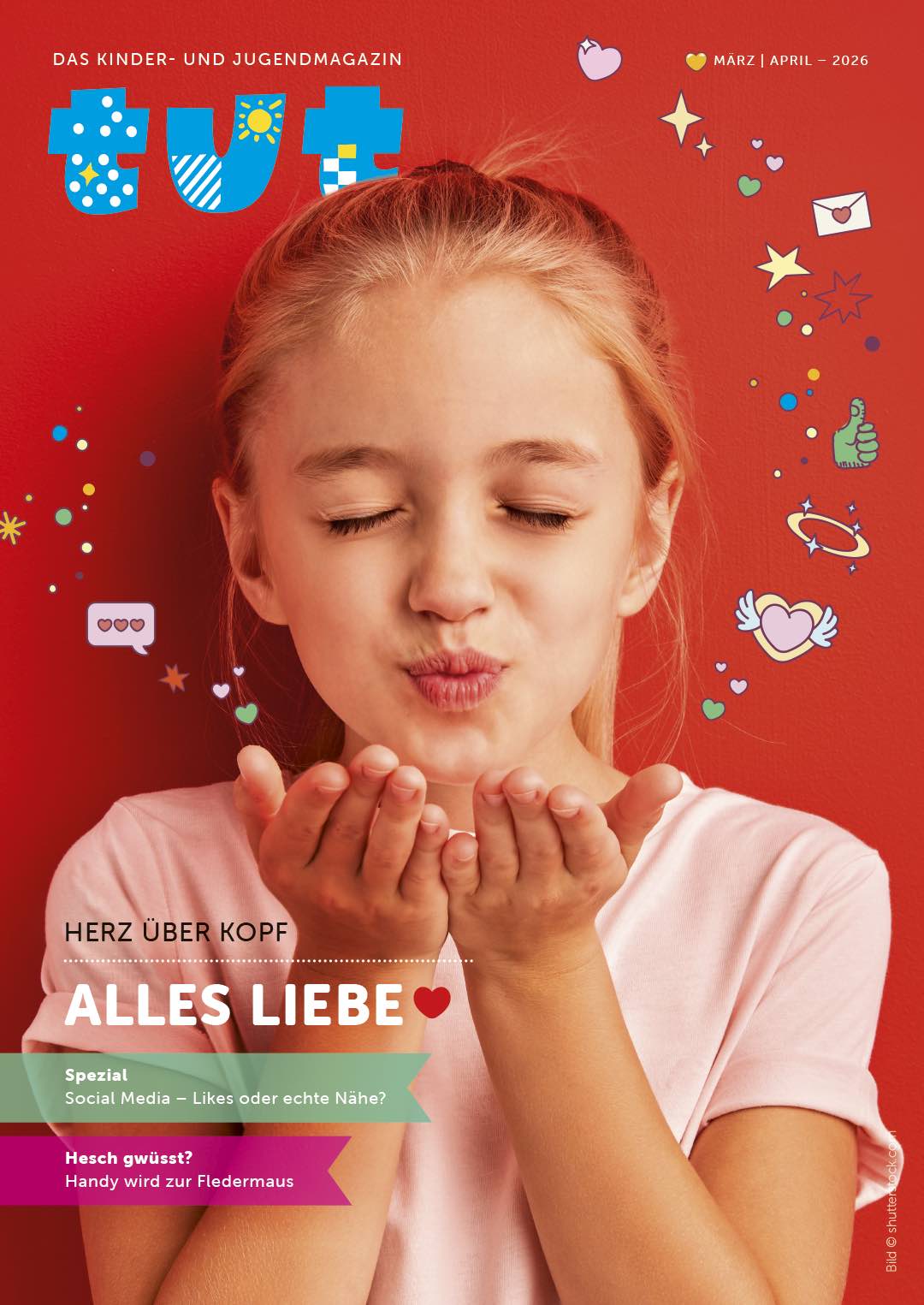 Frühlingszeit, Schmetterlingszeit – Zeit der Liebe! Aber was ist eigentlich Liebe? TUT geht dieser Frage nach. Denn Liebe hat viele Formen: Freundschaft, Verliebtsein, Selbstliebe, Nächstenliebe. Warum kribbelt es im Bauch? Was bedeuten Likes – und was echte Freundschaft? Und woher kommt der Satz «Die Liebe ist geduldig …»? «Liebe ist …» – du erfährst es in der neuen Ausgabe.
